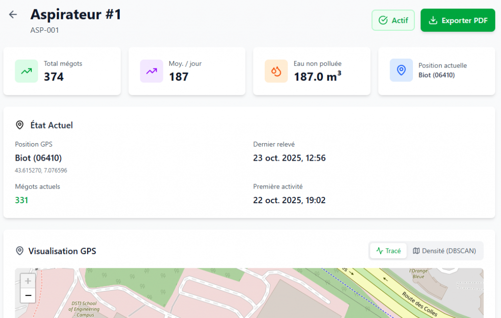 Localisez chaque mégot avec un système GPS intégré, la donnée sera envoyée toutes les heures sur la plateforme de gestion.